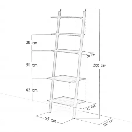 Descubre la solución de almacenamiento vertical ideal para hogares contemporáneos: nuestra biblioteca tipo escalera, una pieza que fusiona la solidez industrial del metal con la calidez natural de los entrepaños de madera.