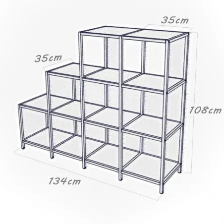 • Versatilidad Modular: La naturaleza modular del mueble te permite adaptarlo a tus necesidades y al espacio disponible gracias a sus 13 entrepaños.