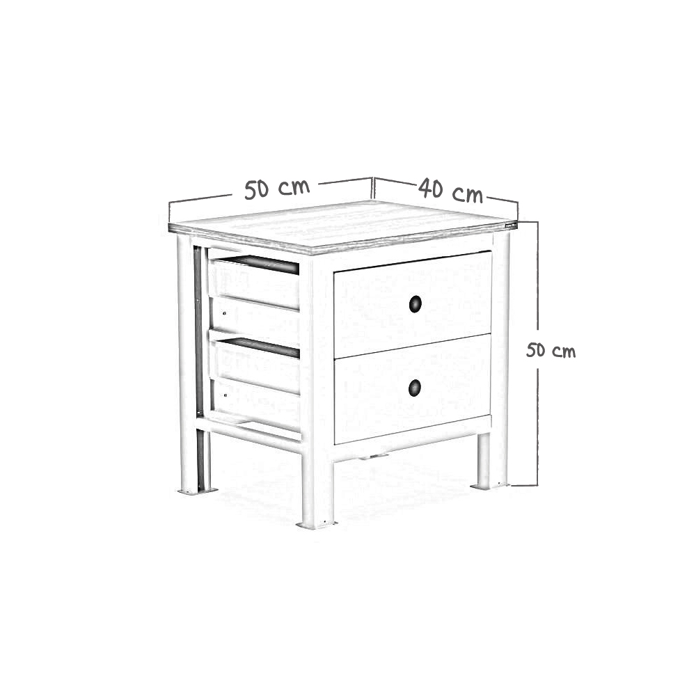 Transforma tu dormitorio en un santuario de orden y sofisticación con nuestra elegante mesa de noche metálica equipada con dos amplios cajones. Esta pieza versátil ha sido diseñada para ser funcional con una estética contemporánea, ofreciéndote una solución para organizar tus objetos personales.